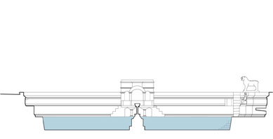 Severely damaged stones were replaced with new stones of matching texture and color. Nepali craftsmen worked with stone conservators from the University of Applied Arts Vienna to restore the carved stone elements. Surviving 19th century views of the tank provided sufficient documentation for the reconstruction of the meditation pavilion, which had been poorly repaired after the 1934 earthquake with cement mortar and concrete balustrades. The 17th-century terracotta water channel was reset, allowing water to flow into the tank through the Lohan Hiti water spout.