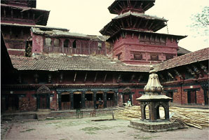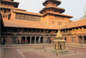 In the 20th century, a combination of neglect, misuse, and inadequate restoration left Mulchowk in a state of disrepair even as it continued to function as a ritual space. Today, Mulchowk bears witness to many different architectural styles. During the latest restoration, the paving was rebuilt to match the excavated Malla-period design, and damaging paint finishes were removed to allow the intricate relief carvings to take on their intended appearance. The unusually large gate, integrated into the older facade in 1854, was also preserved. The dilapidated east and north wings were reconstructed, along with the entire roof structure and cover.