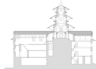 The recently completed restoration included modern structural reinforcements using timber and steel. The addition of horizontal timber trusses, supported by diagonals and connected with stainless steel bolts, achieves a warren truss capable of stabilizing the entire gallery space. The floor planes were stiffened with layers of hardwood and plywood to create rigid diaphragms. These measures have substantially improved the temple's resistance to seismic motion.